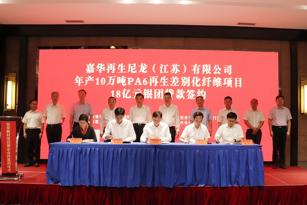 7月21日,在江蘇省淮安市,k8凱發官網與中國銀行、工商銀行、建設銀行、民生銀行等7家金融機構組成的銀團簽訂貸款協議書,總授信金額28億元,支持k8凱發官網綠色多功能錦綸新材料一體化項目(一期)的建設。